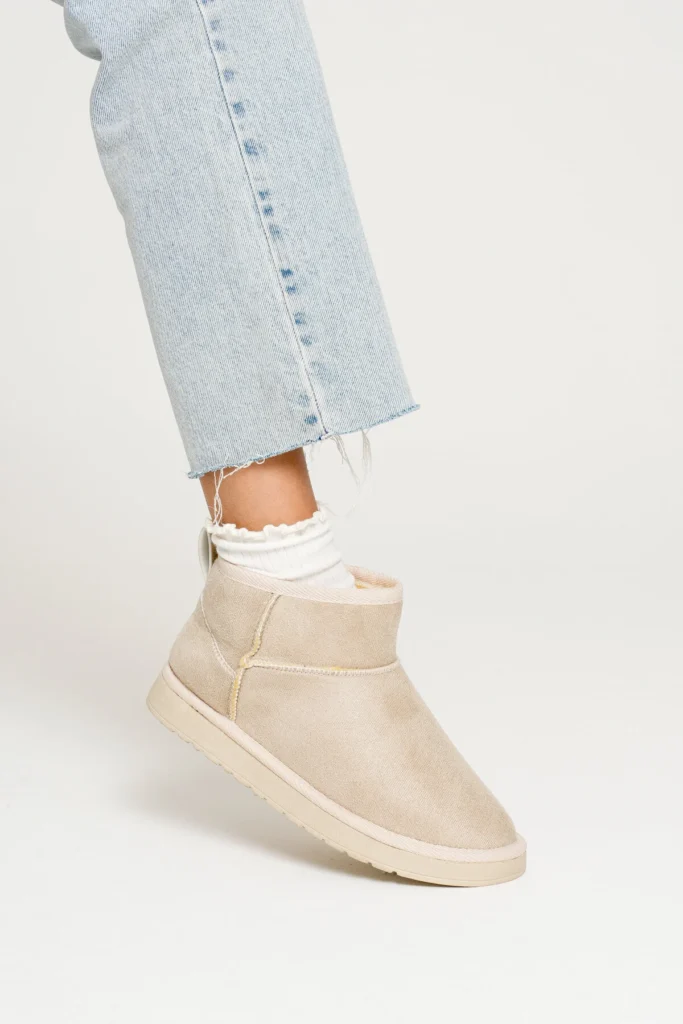 Doğal, temiz ve minimal bir şıklık sunan bu bej kışlık bot; yumuşacık kürklü iç astarı sayesinde soğuk havalarda maksimum sıcaklık sağlayarak konforu ön plana çıkarır. Hafif yapısı ve nefes alan dokusu, gün içerisinde rahat hareket etmenize olanak tanırken ayaklarınızı üşütmeden uzun süreli kullanım imkânı sunar.